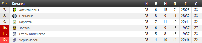 Вторая шестерка борется за выживание. Напрямую Премьер-лигу покидает команда, занявшая 12-е место. Остальные две путевки разыгрывают в плей-офф между 10-11 местами УПЛ и 2-3 местами Первой лиги.