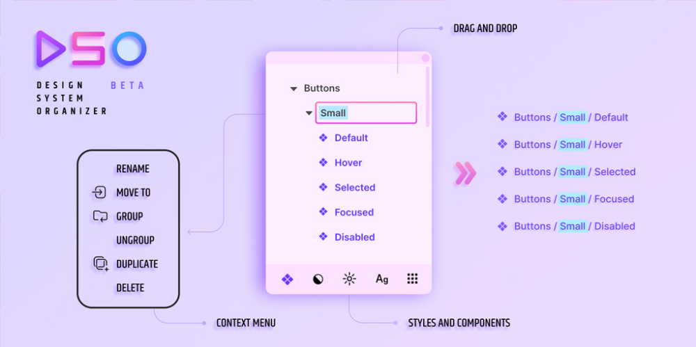 Плагин для организации компонентов в Figma. Он позволяет сгруппировать и разгруппировать компоненты а также перемещать их в вашей библиотеке.