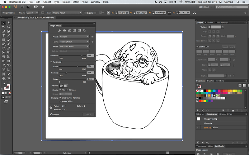 Скриншоты сделаны в версии Illustrator CC для Mac. Версия для Windows может немного отличаться.