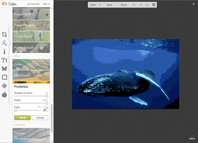 Этот фильтр путем усреднения цветовых и яркостных показателей соседних пикселов создает впечатление, что изображение состоит из множества фигур, которые можно определить как многоугольники.