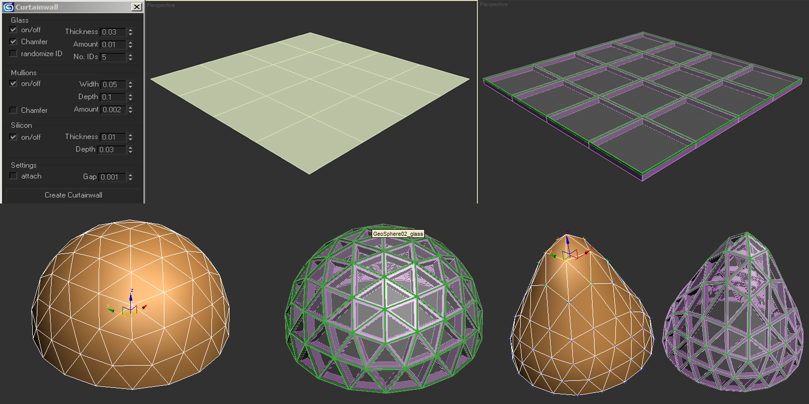 - Max/Min Tilt, Spread — тот же принцип, что и вращение и смещение, только касается угла наклона верхней поверхности;