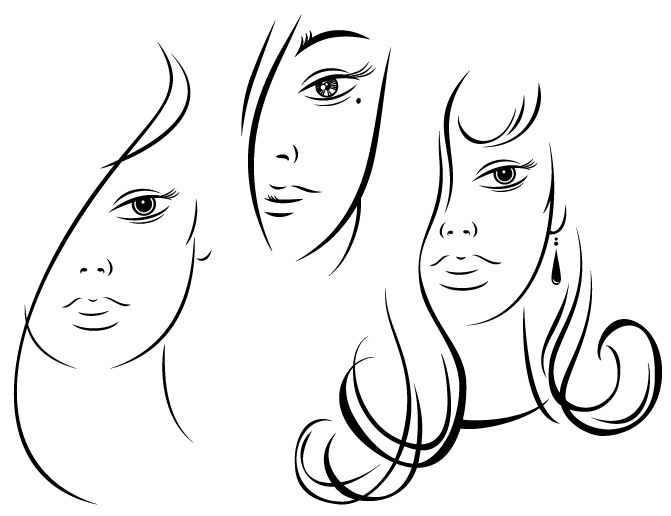Satz abstrakter Frauengesichter.