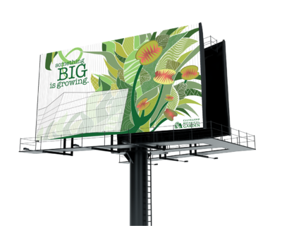 Самый масштабный вид наружной рекламы — билборд. Конструкции площадью нанесения 3*6м возвышаются вдоль магистральных дорог, центральных городских улиц и на фасадах зданий.