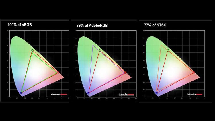У него шире цветовой охват — 130,2% sRGB и 45,5% всего видимого человеком спектра.